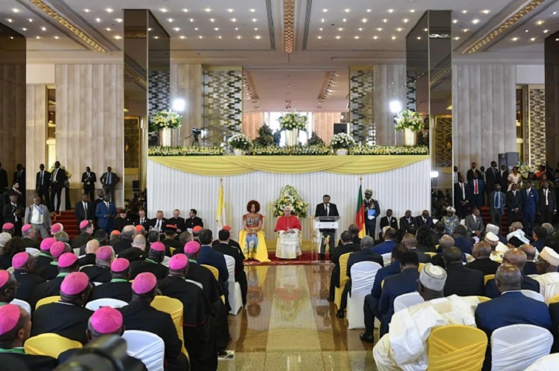 En un cambio de última hora, el papa pronunció su discurso en el palacio presidencial y ante Biya, en el primer acto de su visita a Camerún y segunda etapa de su periplo africano tras llegar de Argelia.