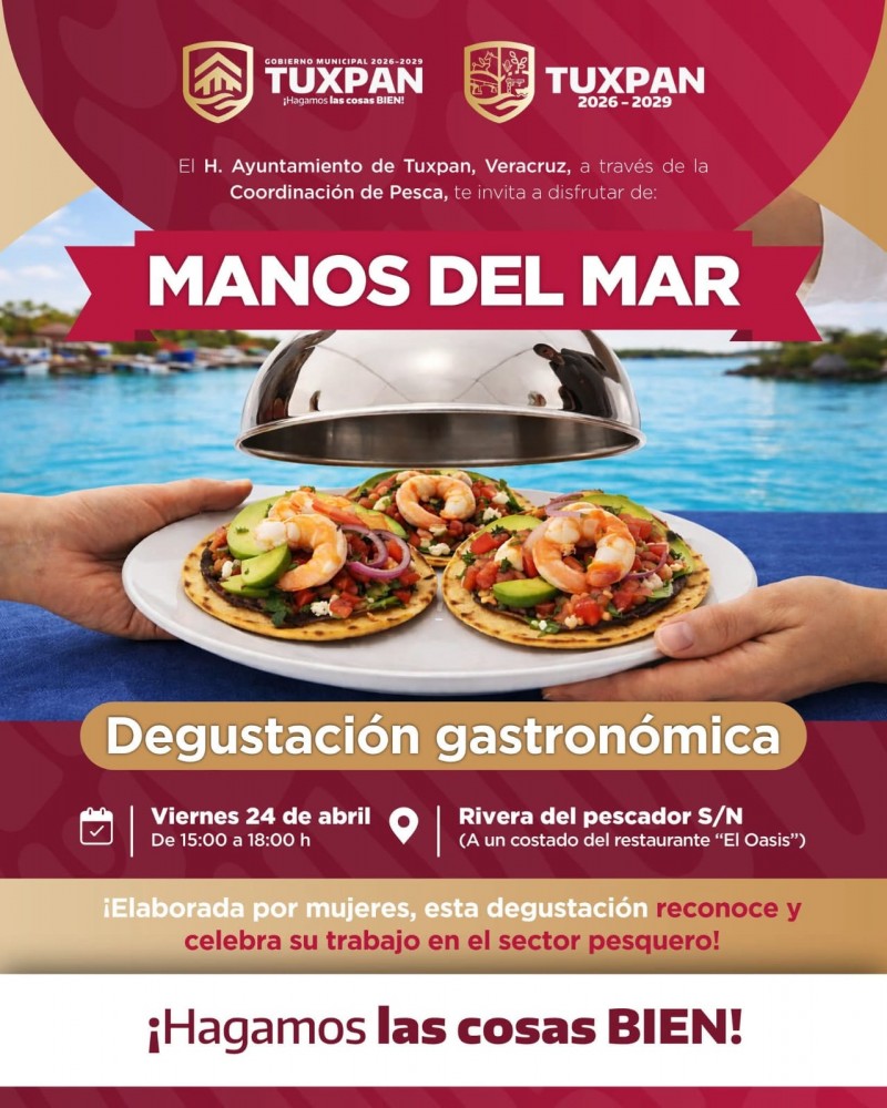Con el objetivo de reconocer la labor de las mujeres en el sector pesquero, el Honorable Ayuntamiento de Tuxpan, a través de la Coordinación de Pesca, llevará a cabo el evento gastronómico “Manos del Mar”, una experiencia que promete resaltar los sabores auténticos del mar y la tradición local.