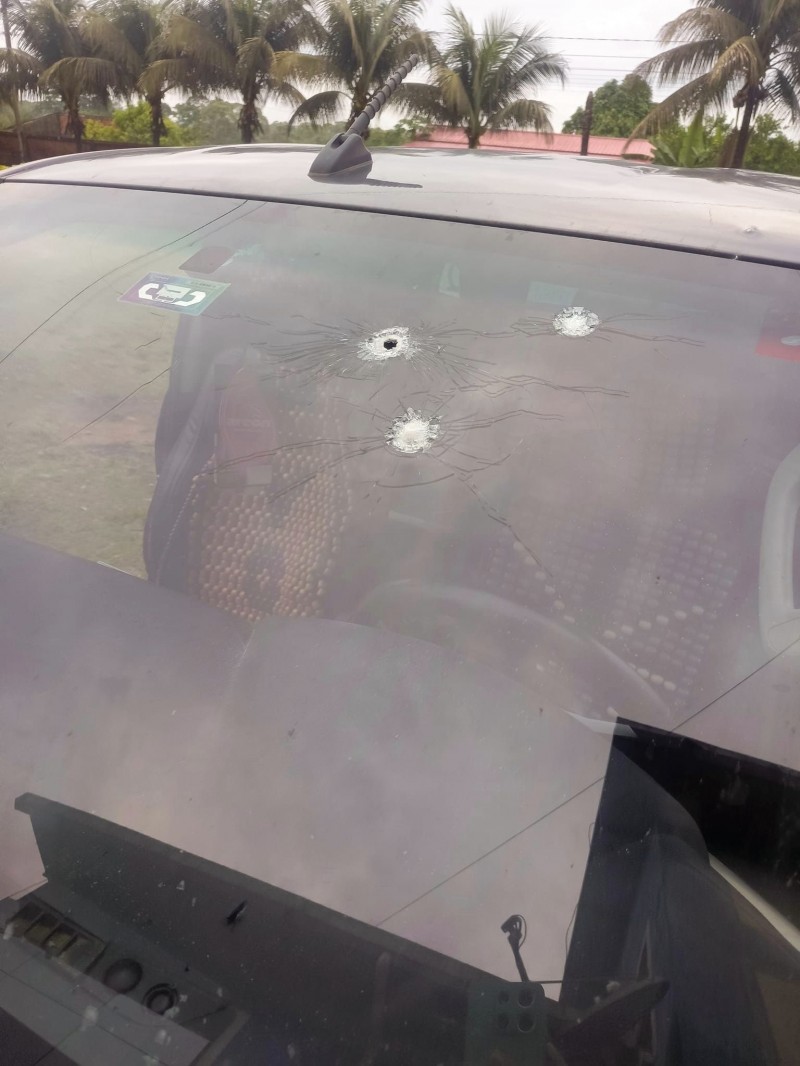 Luego, el líder del oficialismo abre la ventanilla y alerta a los comunarios que les han disparado y les piden que bloqueen el camino para que sus perseguidores no puedan pasar.