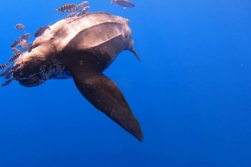 Los fondos marinos al suroeste de Tenerife han sido escenario de un hallazgo poco común: una majestuosa tortuga laúd. El coloso de las tortugas marinas sorprendió a un grupo de observadores de la compañía Bonadea II. Este ejemplar, de dimensiones asombrosas, puede sobrepasar los dos metros de largo y superar fácilmente los 600 kilos, lo que la convierte en la reina indiscutible de su familia.