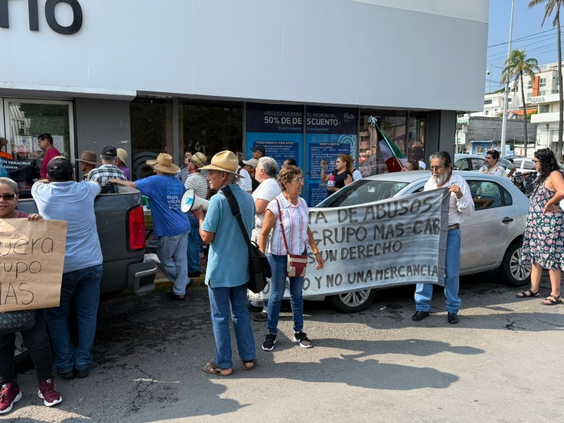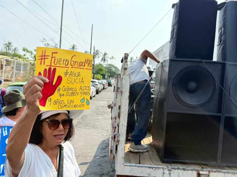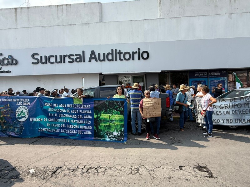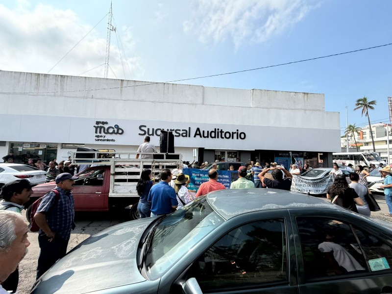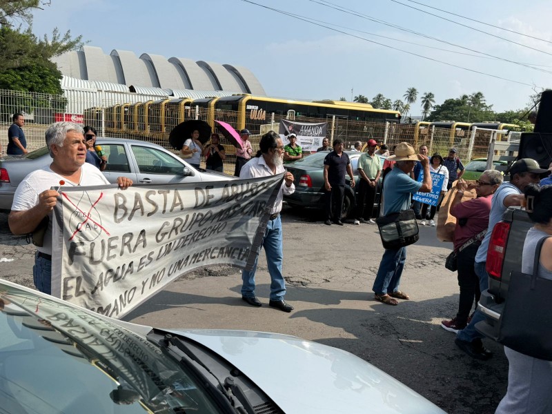 Decenas de habitantes de Veracruz protestaron frente a las oficinas de Grupo MAS para exigir al gobierno la cancelación de la concesión de la empresa público-privada encargada del agua y saneamiento en Veracruz y Medellín.