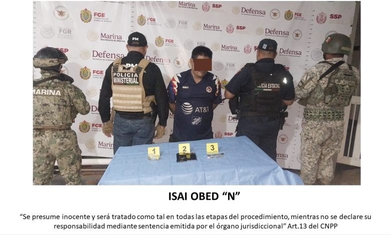 En dicho operativo se detuvo en flagrancia a Isai Obed “N”. Asimismo, se aseguró un objeto para el probable consumo de enervantes, bolsas que contenían una sustancia con características similares a las del cristal y un celular.