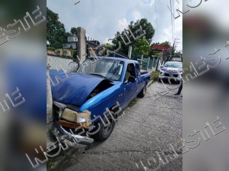 El percance ocurrió cuando el conductor de una camioneta de modelo atrasado perdió el control de la unidad y terminó impactándose contra la base de un poste de concreto propiedad de la Comisión Federal de Electricidad (CFE).