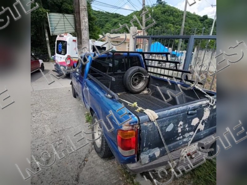 El accidente se registró en la esquina de las calles Cuauhtémoc y 16 de Septiembre, donde una camioneta Ford Ranger, color azul metálico y con placas del estado de Tamaulipas, se vio involucrada.