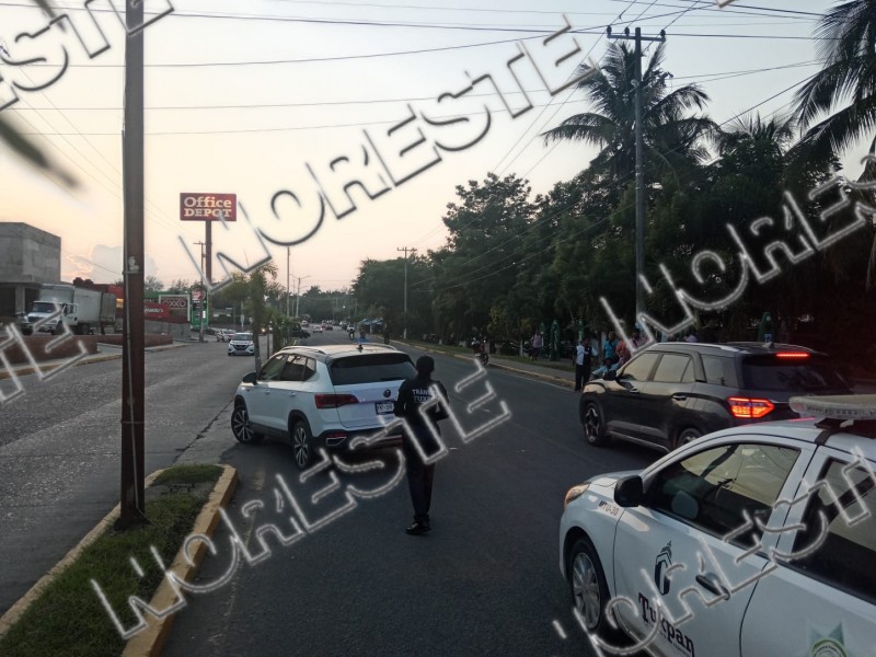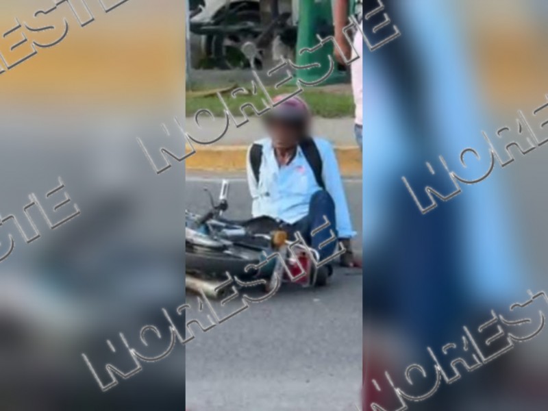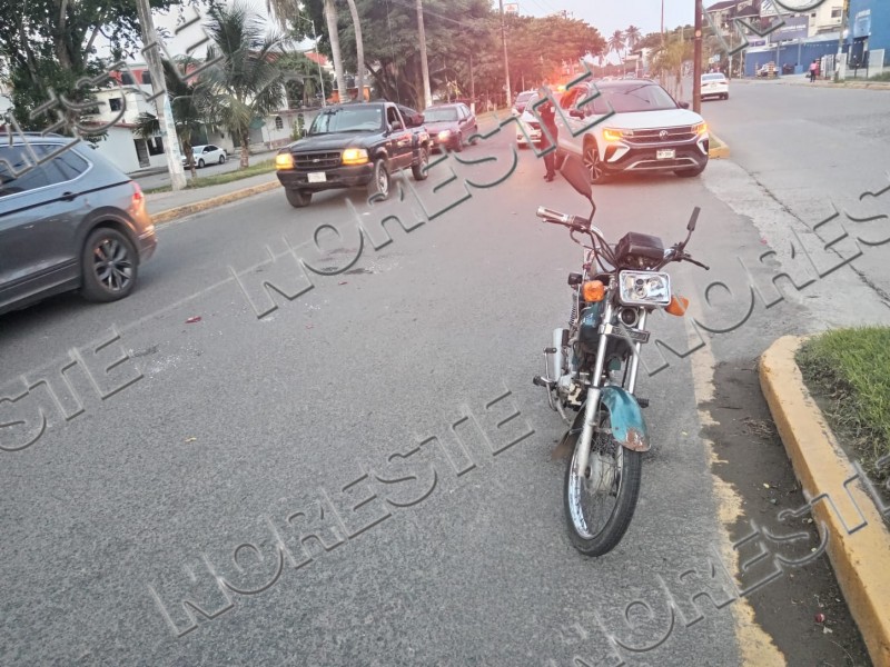 Un adulto mayor que se desplazaba en motocicleta terminó lesionado la tarde de este martes luego de chocar por alcance contra una camioneta particular en el fraccionamiento Jardines de Tuxpan.