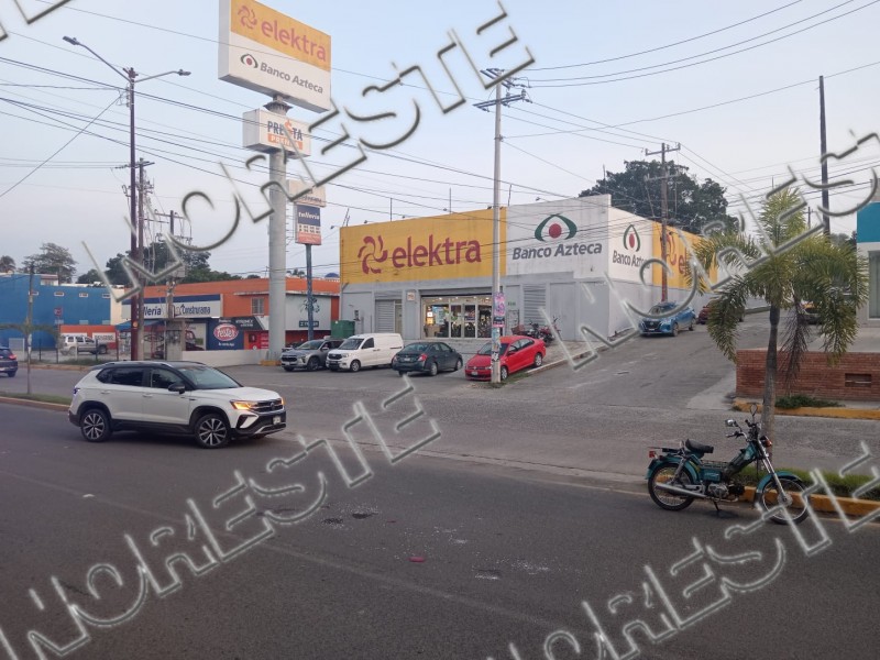 El percance ocurrió sobre el bulevar Demetrio Ruiz Malerva, a la altura de la calle Río Atoyac, cuando el motociclista, identificado como Artemio N., de 70 años, residente de la comunidad de Juana Moza, no guardó la distancia adecuada y terminó impactándose en la parte trasera de una Volkswagen Taos, modelo 2024, color blanco, conducida por Miguel N., de 43 años, vecino de la misma colonia.