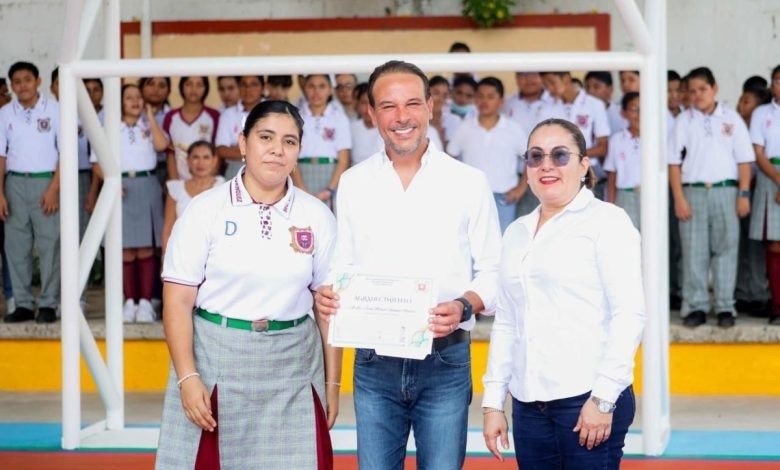 La comunidad de la Secundaria General 6 Belisario Domínguez, agradeció al alcalde de Boca del Río, Juan Manuel Unánue Abascal, por la rehabilitación de su cancha de usos múltiples, logrando así un espacio digno para el uso y disfrute de estudiantes, personal docente y padres de familia.
