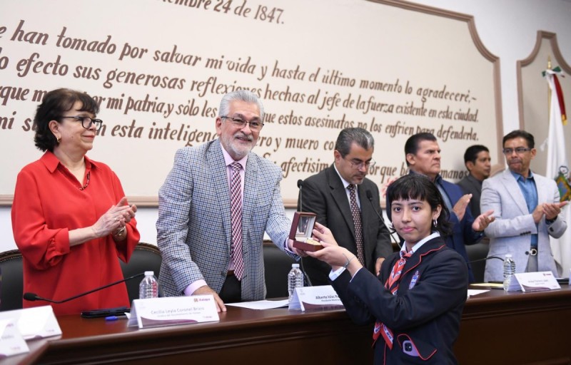 La regidora Minerva Salcedo Baca expuso que con esta medalla el Cabildo reconoce a los profesionistas mejor evaluados, así como la labor educativa de la BENV, en particular por su contribución a la formación de los futuros docentes que tendrán a su cargo la educación de los niños y jóvenes.