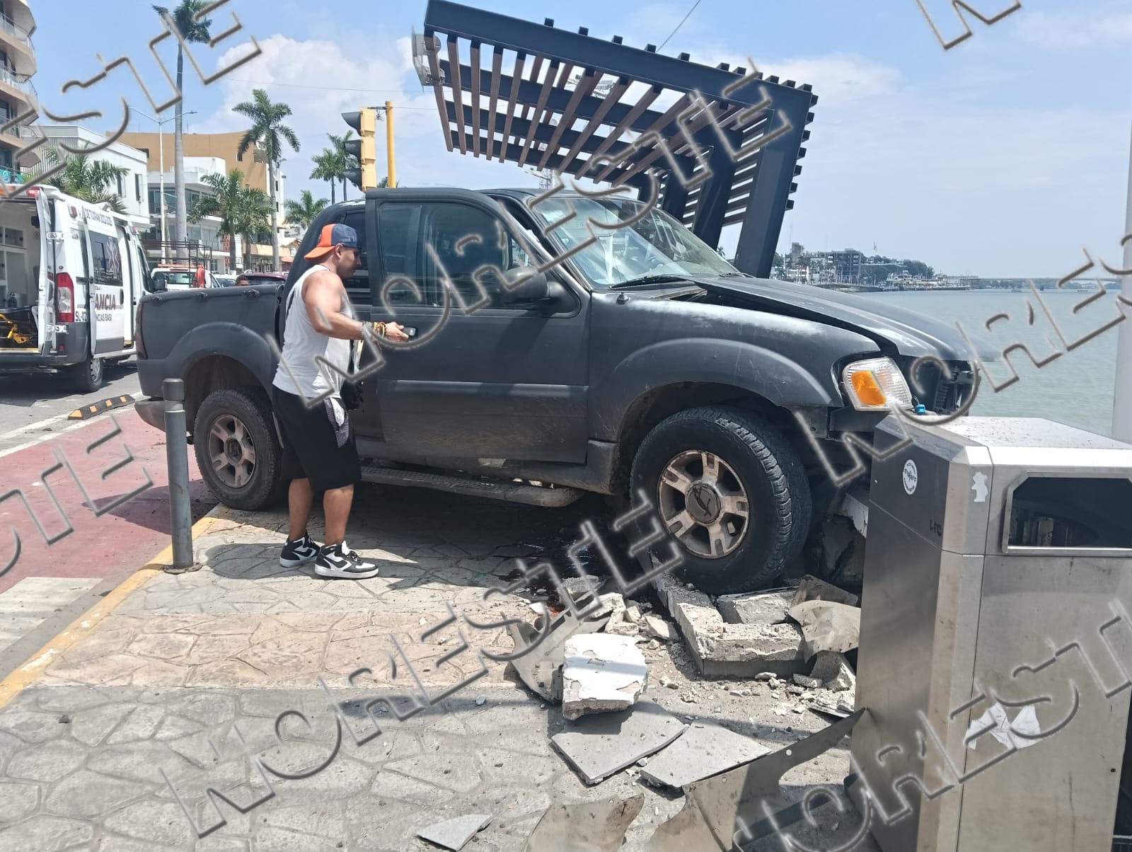 Tras el primer choque, la unidad perdió estabilidad y avanzó sin control hasta estrellarse contra el barandal de contención, quedando a escasos metros de caer al río. En su trayecto, estuvo a punto de arrollar a una familia que descansaba en una jardinera del parador urbano, situación que fue evitada gracias a la rápida reacción de la madre que logró ponerse a salvo con su bebé.