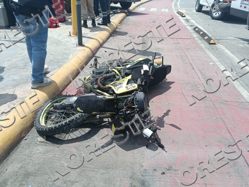 El percance se registró en el cruce del bulevar Jesús Reyes Heroles con la avenida Revolución, cuando una camioneta Ford Explorer de color negro, con placas del Estado de México, presentó presuntas fallas mecánicas en los frenos y terminó impactando contra un motociclista que circulaba por la zona.