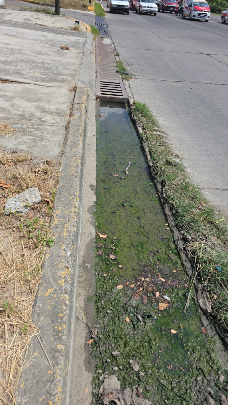 El primer problema se encuentra en el dren pluvial, completamente anegado de basura y tierra, lo que además de generar malos olores y contaminación visual, impide el correcto desalojo del agua en temporadas de lluvia. Esta situación convierte a la vialidad en un punto de alto riesgo para automovilistas y peatones que diariamente transitan por la zona.