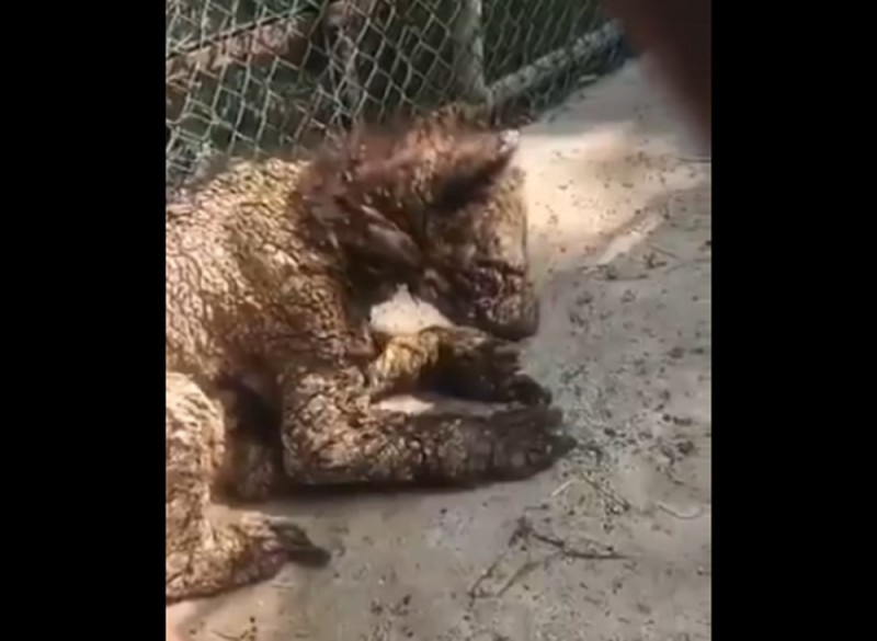 En los videos se observa que la infección en la piel le impide incluso mantenerse en pie, lo que ha generado indignación entre la comunidad digital y organizaciones defensoras del bienestar animal.