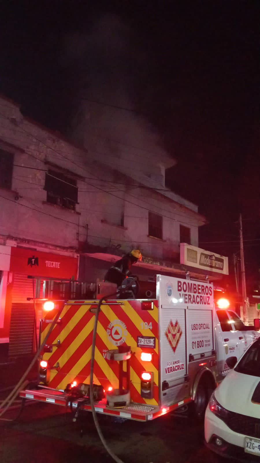 Un fuerte incendio consumió la planta alta de un inmueble ubicado en la esquina de Velázquez de la Cadena y la avenida Úrsulo Galván, en la zona de mercados del Centro Histórico de Veracruz, la noche del jueves.