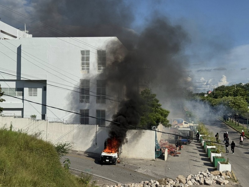 En el último día de actividades bajo el marco del 11 aniversario de la desaparición de los 43 normalistas de Ayotzinapa, integrantes de la Federación de Estudiantes Campesinos Socialistas de México (FECSM) quemaron tres camionetas en los accesos al Palacio de Justicia de Iguala y derribaron un portón para introducirse al inmueble.