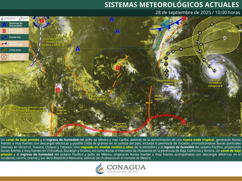 Los sistemas meteorológicos mencionados ocasionarán los siguientes efectos: