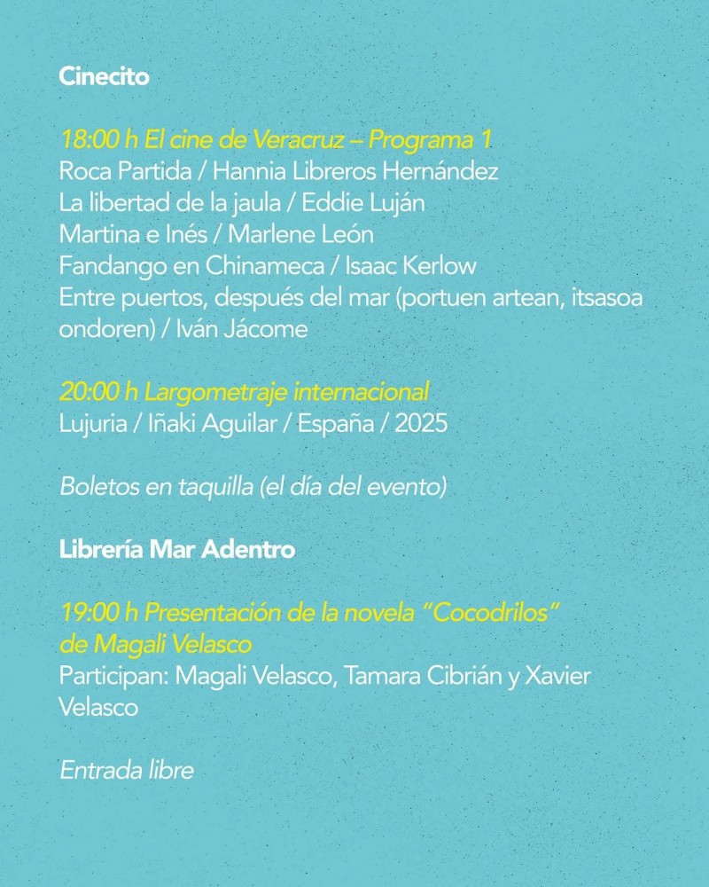 “Presentaremos el estreno en el estado de Veracruz de la película Cocodrilos, del director Xavier Velasco, (…$ es una película filmada en Veracruz, en locaciones y con talento local y nacional”, indicó.