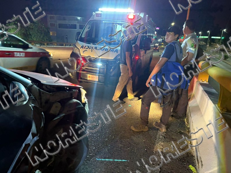 Un aparatoso accidente se registró en el distribuidor vial que conecta la División de Oriente con el bulevar Adolfo Ruiz Cortines, en el municipio de Poza Rica.