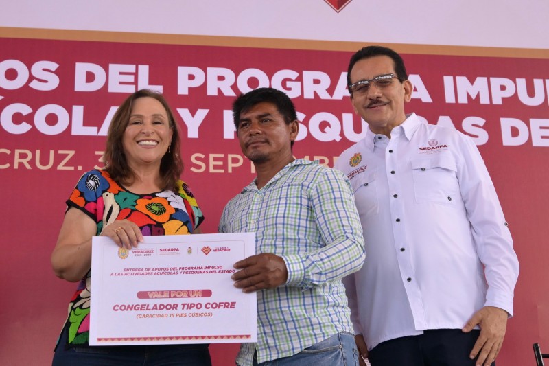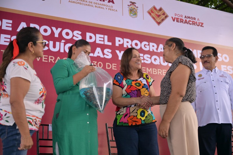 Porque la pesca y la acuacultura son prioridad nacional al garantizar alimentos de calidad, empleos e ingresos que impulsan el desarrollo, la gobernadora Rocío Nahle García encabezó la entrega de insumos y equipos del programa Fomento a las Actividades Acuícolas y Pesqueras, implementado por la Secretaría de Desarrollo Agropecuario, Rural y Pesca (Sedarpa).