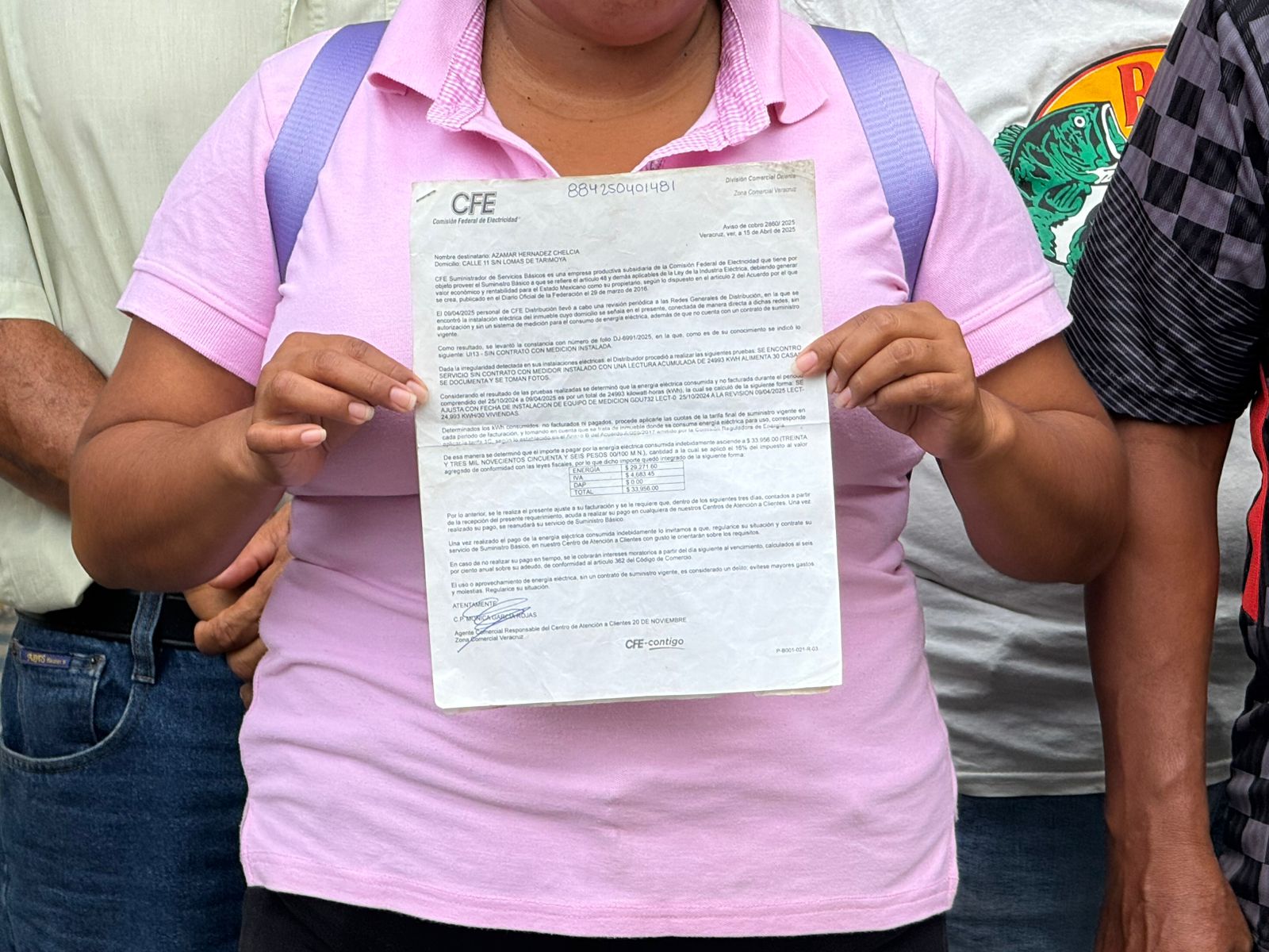 Vecinos de la colonia Ana Carreto, de la ciudad de Veracruz, acusan a la Comisión Federal de Electricidad de cobros excesivos y mal servicio, por lo que se manifestaron este 1 de octubre para exigir una solución.