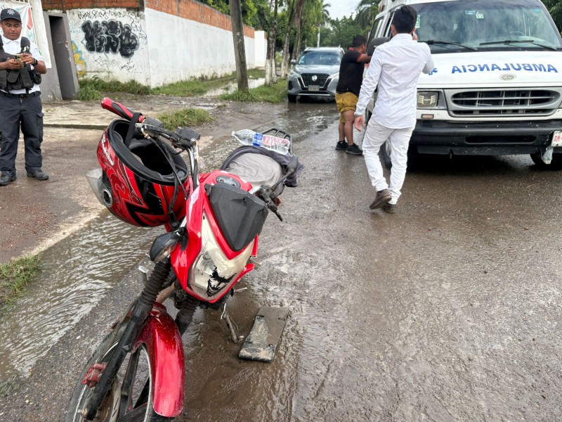 Los hechos ocurrieron cuando un automóvil particular, marca Chevrolet Beat, salió de las instalaciones médicas, cortando la circulación a una motocicleta Itálika FT 150 GTS.