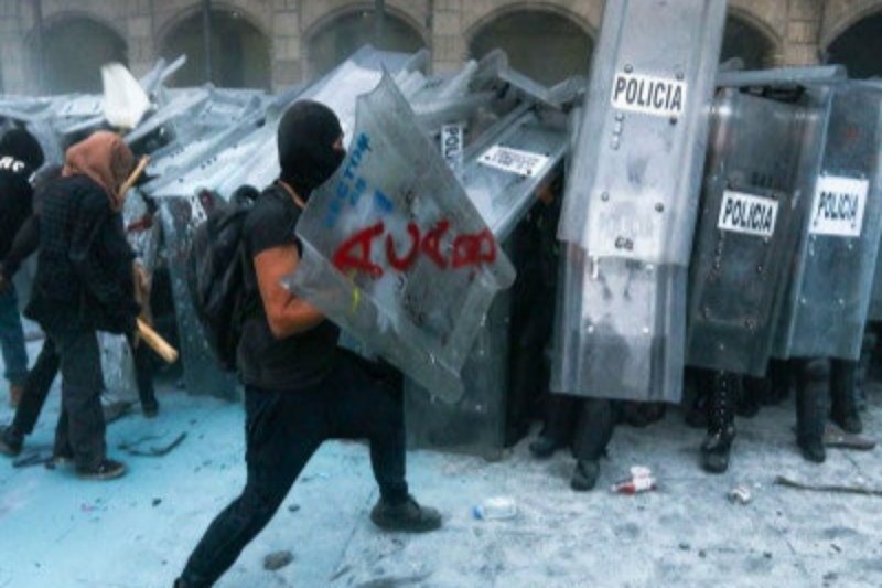 Pero al llegar al Zócalo de la Ciudad de México la marcha se tornó más violenta, los protagonistas de los actos de vandalismo comenzaron a irrumpir en una de las joyerías de renombre donde se robaron varias piezas del lugar, esto originó la intervención de la policía antimotines, lo cual generó otro enfrentamiento donde varios policías resultaron con lesiones de consideración.