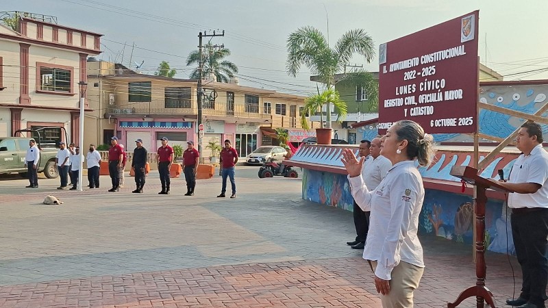 En esta ocasión, correspondió al personal de las direcciones de Registro Civil, Catastro y Oficialía Mayor organizar y encabezar la ceremonia. La escolta de la Policía Municipal tuvo a su cargo la presentación del lábaro patrio, reforzando el sentido de identidad y respeto a los símbolos nacionales.