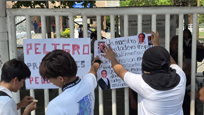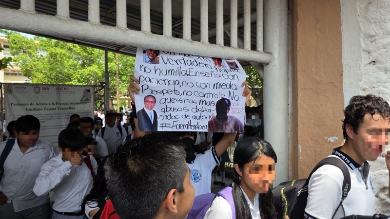 Estudiantes de la Escuela Secundaria y de Bachilleres Oficial No. 8 "Emiliano Zapata" se movilizaron en el acceso principal del plantel este lunes, estallando en una enérgica manifestación en contra del profesor Guillermo Mendoza Martínez. El docente es señalado de presuntos actos de acoso y abuso en contra de alumnas, un señalamiento que, según los estudiantes, ha sido ignorado por años dentro de la institución.