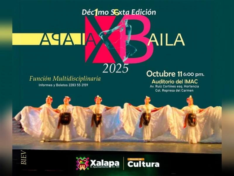 En el auditorio de la IMAC, a las 18:00 horas, se realizará la décima sexta edición de Xalapa Baila 2025, que presentará una función multidisciplinaria.