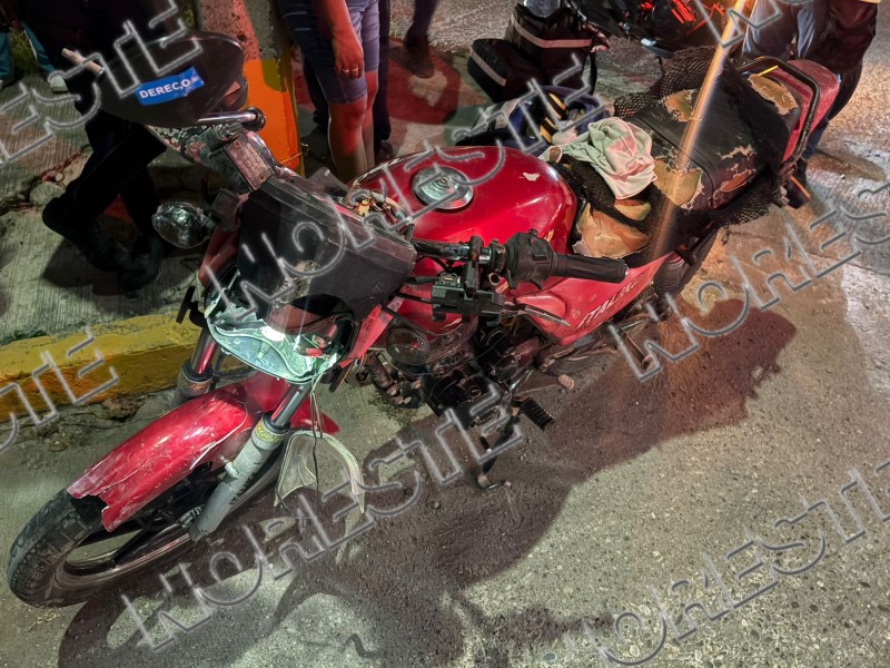 Un accidente vehicular se registró sobre la calle Pozo 13, donde una motocicleta Itálika FT 150 de color rojo, con placas del estado de Veracruz, fue impactada por un automóvil Volkswagen Jetta también con placas veracruzanas, luego de que este último presuntamente cortara la circulación al intentar incorporarse a la calle Fresno.