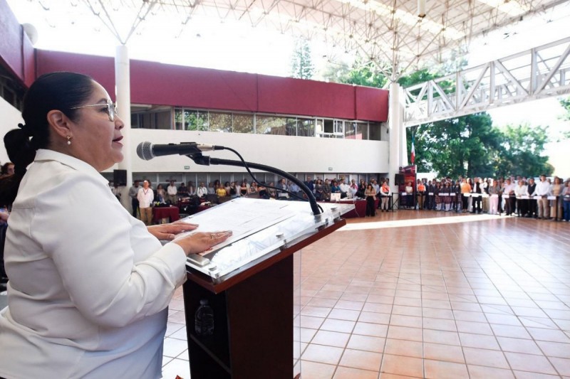 Durante la ceremonia de Lunes Cívico, la titular de la dependencia, Claudia Tello Espinosa, destacó que en Veracruz todos los días se generan buenas noticias en cada trámite que se resuelve, en cada escuela que se mejora y en cada estudiante que recibe atención y oportunidades para su desarrollo.