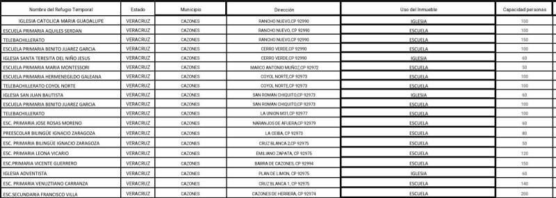El gobierno municipal de Cazones de Herrera, encabezado por el alcalde Miguel Ángel Uribe Toral, informo a la población que, debido al incremento en el nivel del río, se han activado refugios temporales para resguardar a las familias que así lo necesiten.