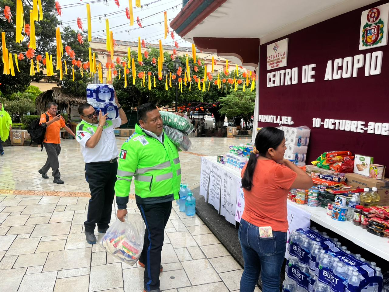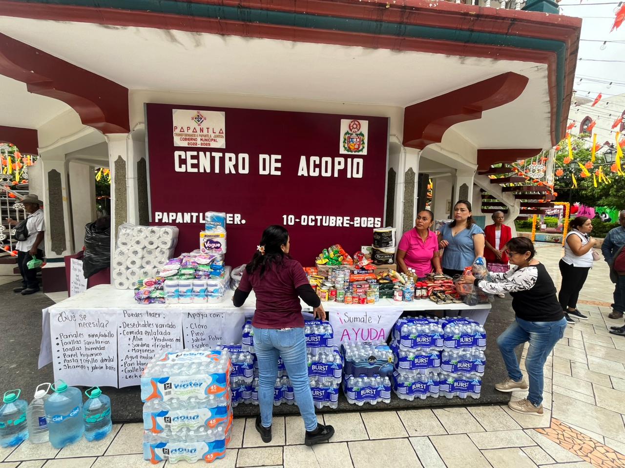 Ante las severas afectaciones provocadas por la reciente depresión tropical y las intensas lluvias en la región, el Ayuntamiento de Papantla, en coordinación con ciudadanos voluntarios, instaló un centro de acopio en el parque Israel C. Téllez y DIF Municipal para brindar apoyo a las familias damnificadas.
