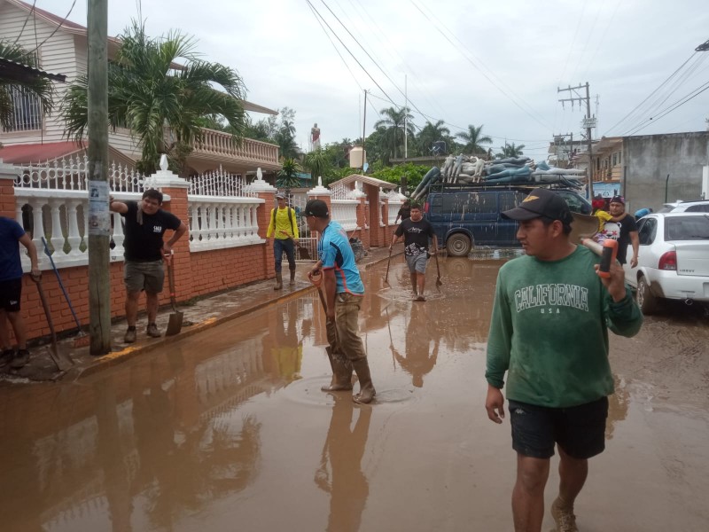 Olvera Torres señaló que acudieron al lugar para colaborar en las labores de limpieza, como muestra de solidaridad con las familias que resultaron afectadas tras la fuerte inundación provocada por el desbordamiento del río Cazones.