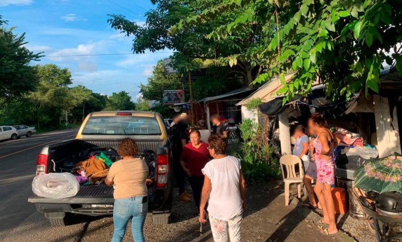 Personal del DIF Municipal a cargo de Patricia Ortiz de Gómez se trasladaron a la comunidad de Zacate Colorado a fin de entregar ropa y comida a los damnificados por el desbordamiento del rio Cazones.