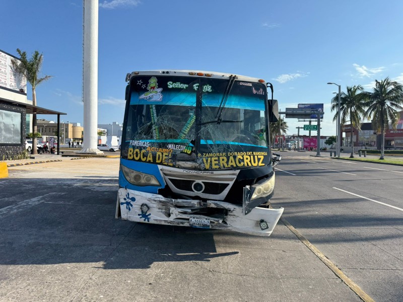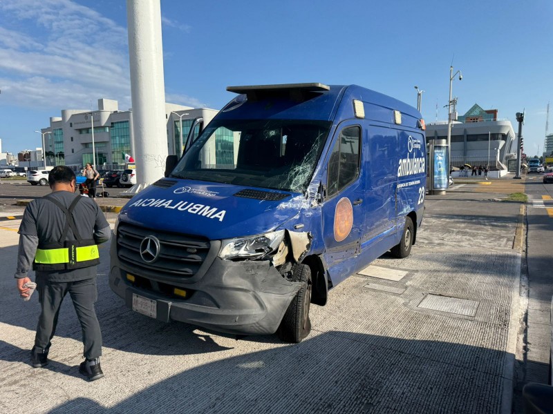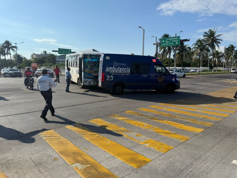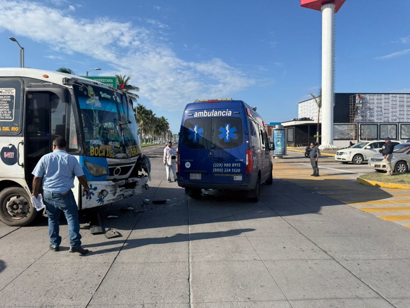 Un camión urbano y una ambulancia chocaron en el cruce vial de las avenidas Juan Pablo II y Ruiz Cortinez en el municipio de Boca del Río.