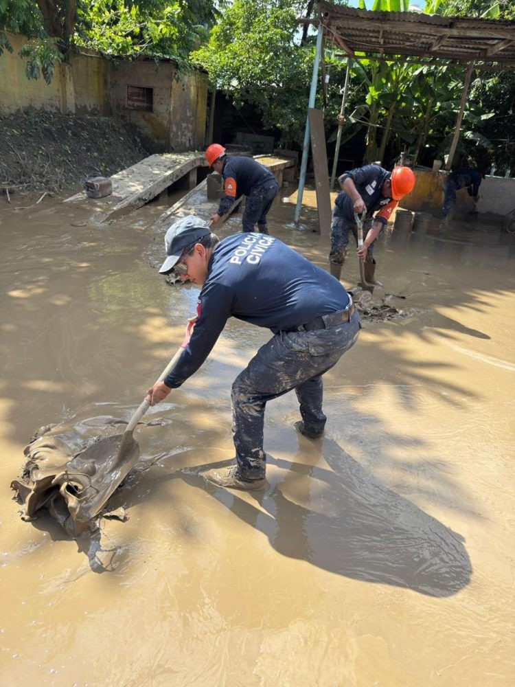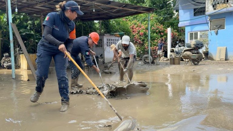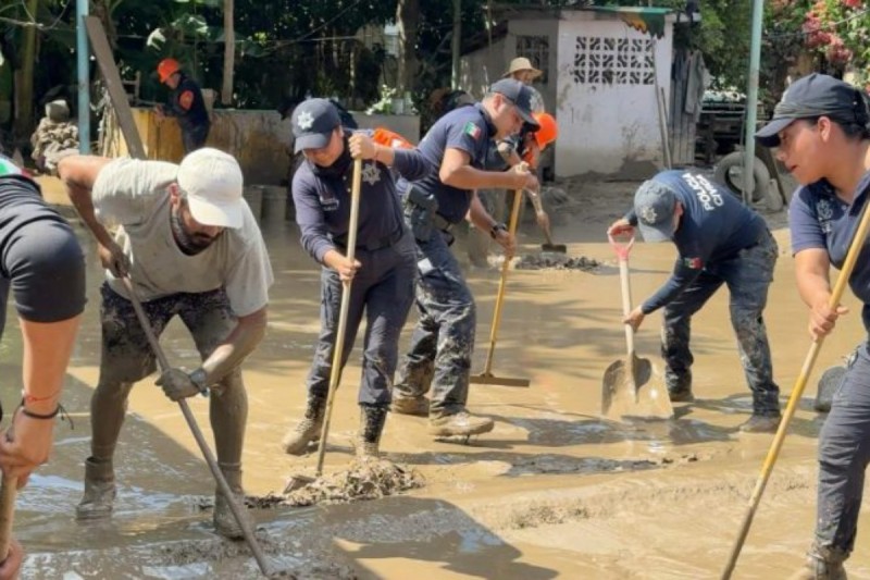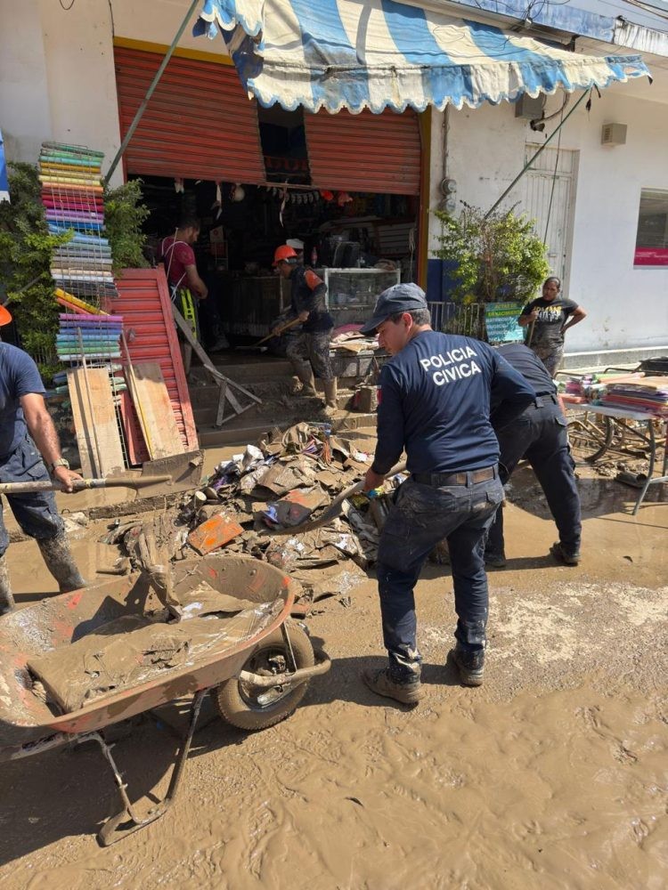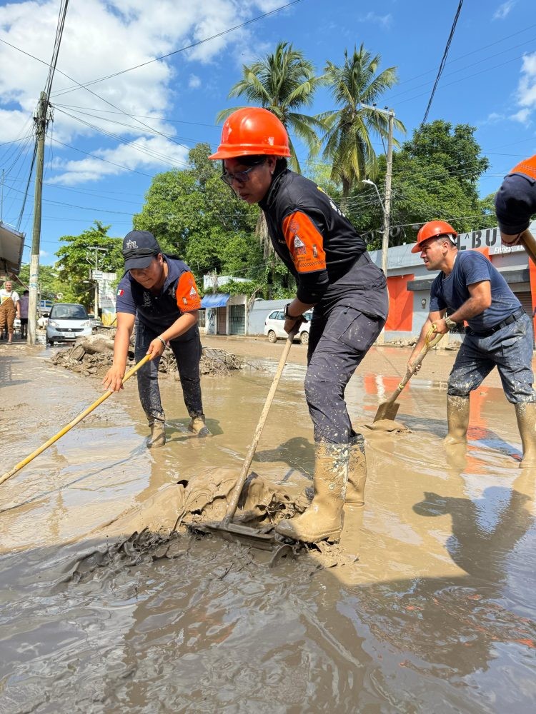 Asimismo, se ha participado en la limpieza y desazolve de 395 viviendas y comercios, y, a través de las cocinas móviles, se han servido 2 mil 295 raciones de alimentos calientes a la población damnificada.