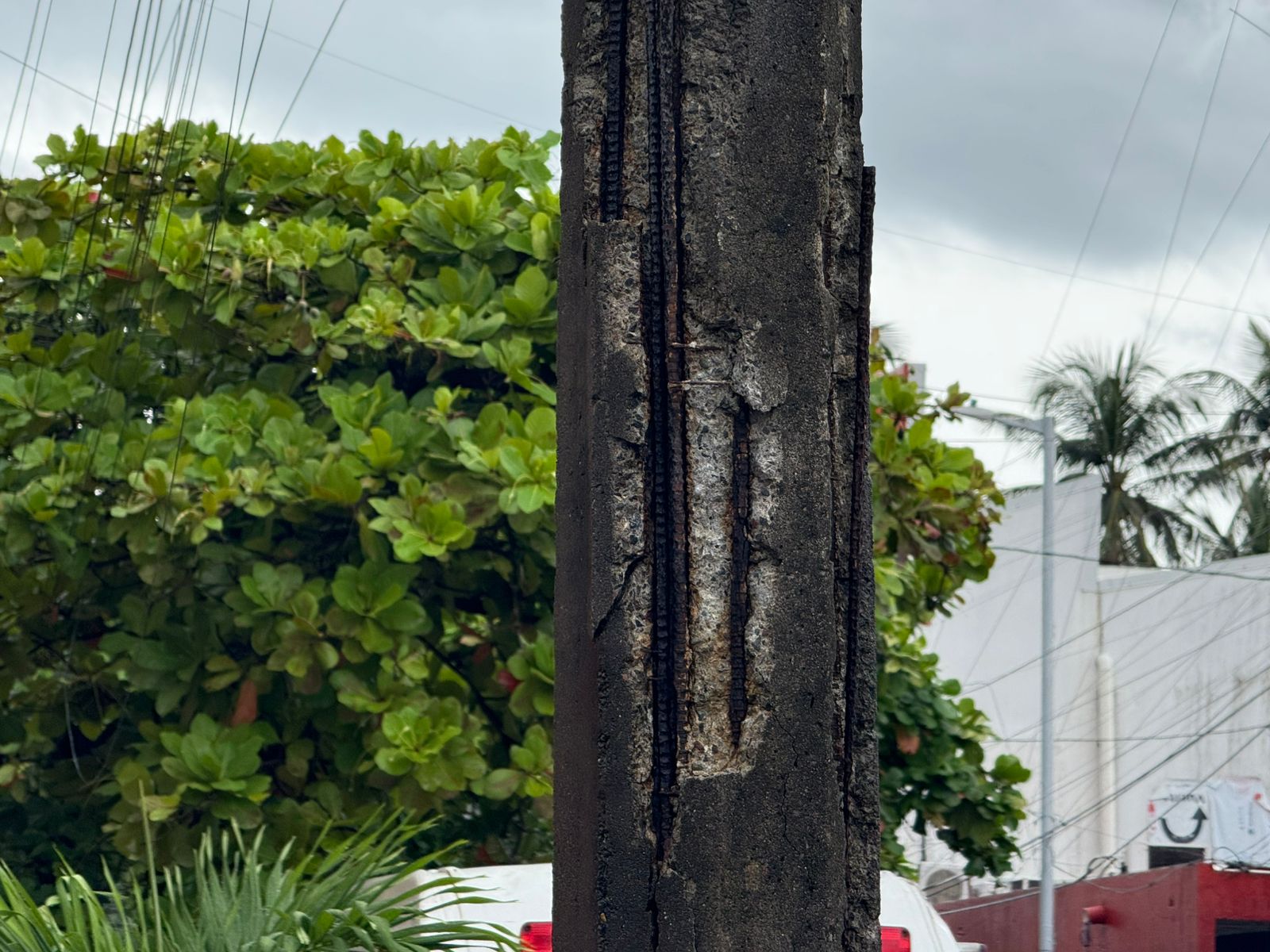 “Es un poste de concreto de Comisión Federal de Electricidad el cual está roto, incluso las varillas están expuestas, están oxidadas y en la parte de arriba del poste hay un transformador”, explicó.