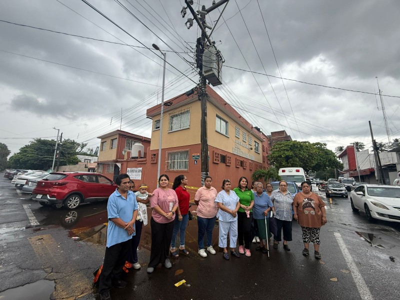 Maestros y padres de familia del Jardín de niños General Heriberto Jara Corona, denunciaron el peligro al que están expuestos por un poste de energía eléctrica que está en pésimo estado y a punto de caer.