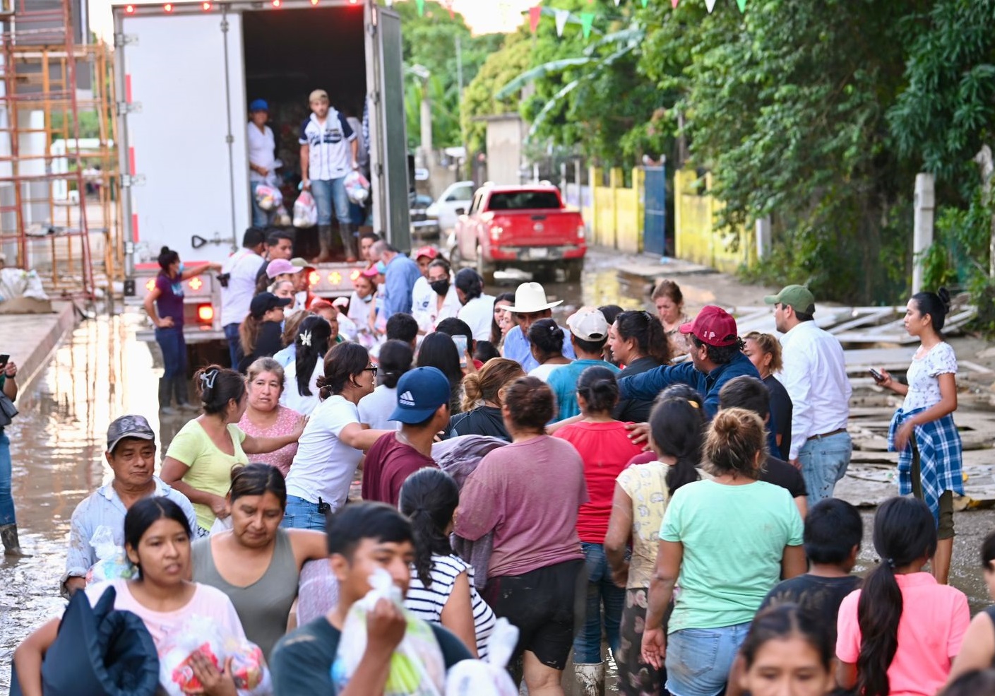 La tarde de este martes 14 de octubre, las diputadas y los diputados del Congreso de Veracruz, encabezados por la presidenta de la Mesa Directiva, diputada Naomi Edith Gómez Santos, y por el presidente de la Junta de Coordinación Política (Jucopo), diputado Esteban Bautista Hernández, realizaron en las comunidades más dañadas del municipio de Álamo Temapache la tercera jornada de distribución de apoyos para las personas afectadas por la contingencia.