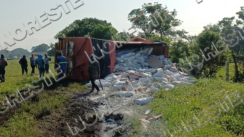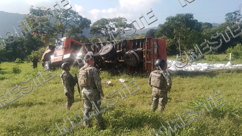 Elementos de la Guardia Nacional División Carreteras, así como de la Secretaría de Marina y la Policía Municipal, acordonaron la zona para evitar riesgos a otros automovilistas y prevenir posibles actos de rapiña, ya que el camión transportaba productos comestibles.