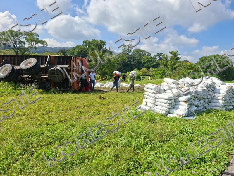 Un tractocamión que transportaba harina de maíz volcó la mañana de este viernes sobre la autopista Córdoba–Veracruz, a la altura del kilómetro 299, dejando como saldo una persona lesionada y daños materiales considerables.