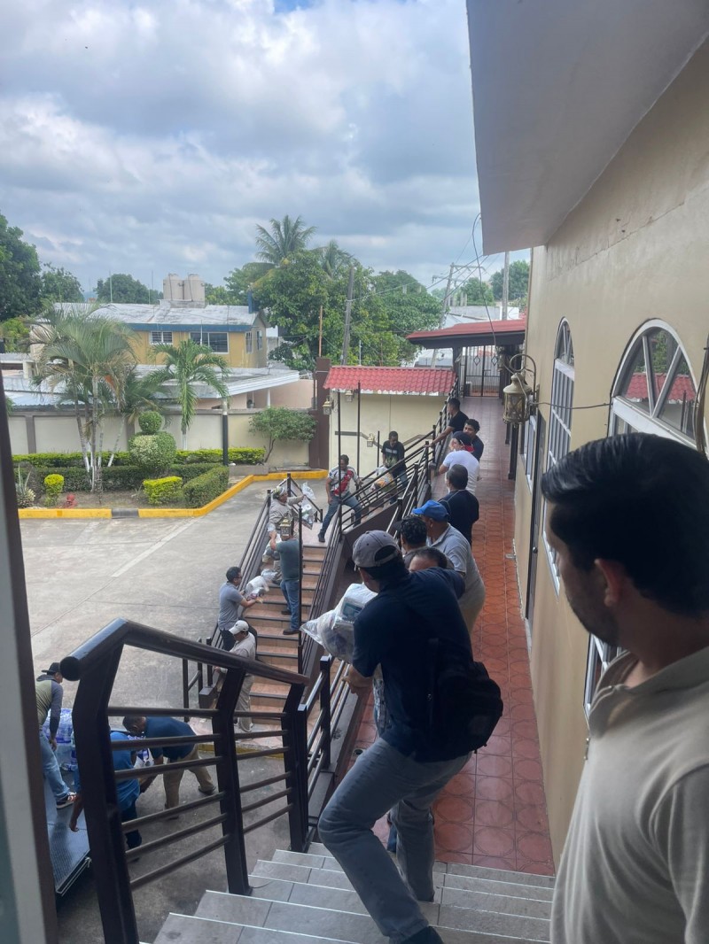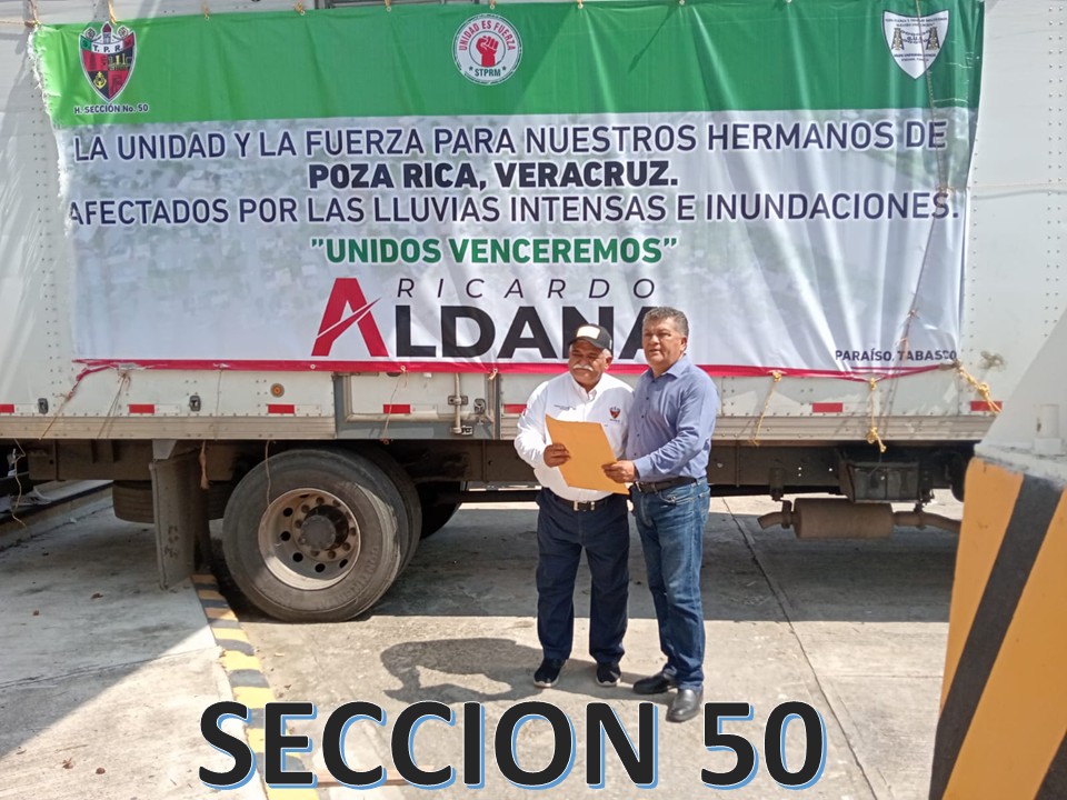 Sección 50 de Dos Bocas y Paraíso, Tabasco: Funcionarios sindicales encabezaron el convoy de víveres, enviados por su Líder, el Lic. Gustavo Guerra Espinoza, y su Secretario General, el compañero José del Carmen de la Cruz de la Cruz.