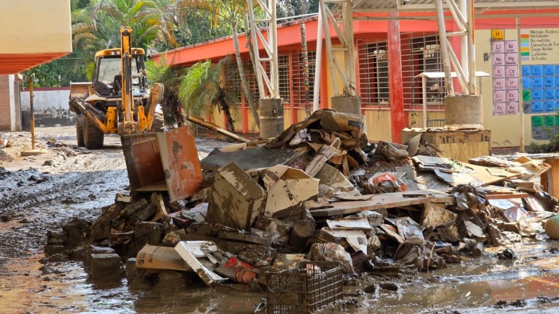 Por ahora, las instalaciones lucen completamente inservibles, con pupitres, pizarrones y materiales escolares sepultados bajo el fango. La comunidad educativa lucha contrarreloj por rescatar lo que aún pueda aprovecharse, mientras esperan que las autoridades estatales y municipales atiendan el llamado urgente de apoyo para reconstruir la escuela.