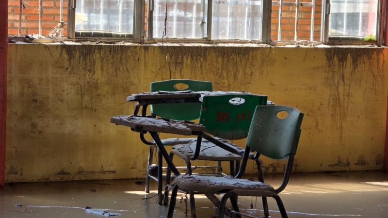 De acuerdo con Rita López Orlando, subdirectora del turno matutino, el plantel perdió tres bardas perimetrales, además de una cerca, mientras que el 100 por ciento de las aulas permanece cubierto bajo una pesada capa de lodo. La magnitud del daño ha hecho imposible que los alumnos regresen a clases, dejando a cientos de estudiantes sin un espacio seguro para continuar su educación.