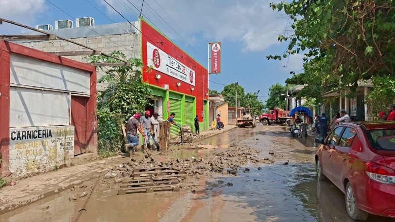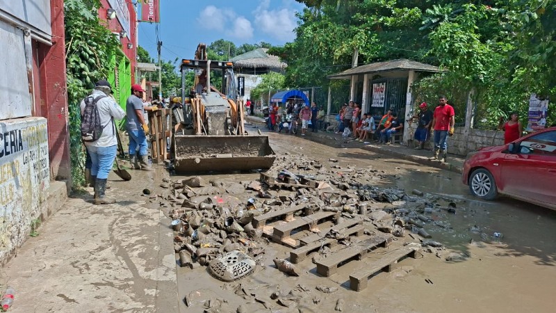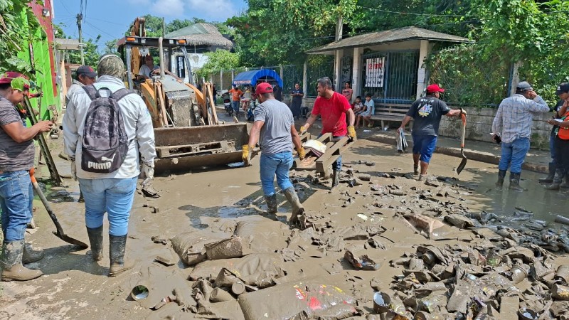 Personal municipal y maquinaria pesada trabajan sin descanso retirando lodo, basura y escombros que las familias y comerciantes sacan de sus hogares y negocios para recuperar sus espacios. Este esfuerzo conjunto es fundamental para restablecer la normalidad en las zonas más afectadas.