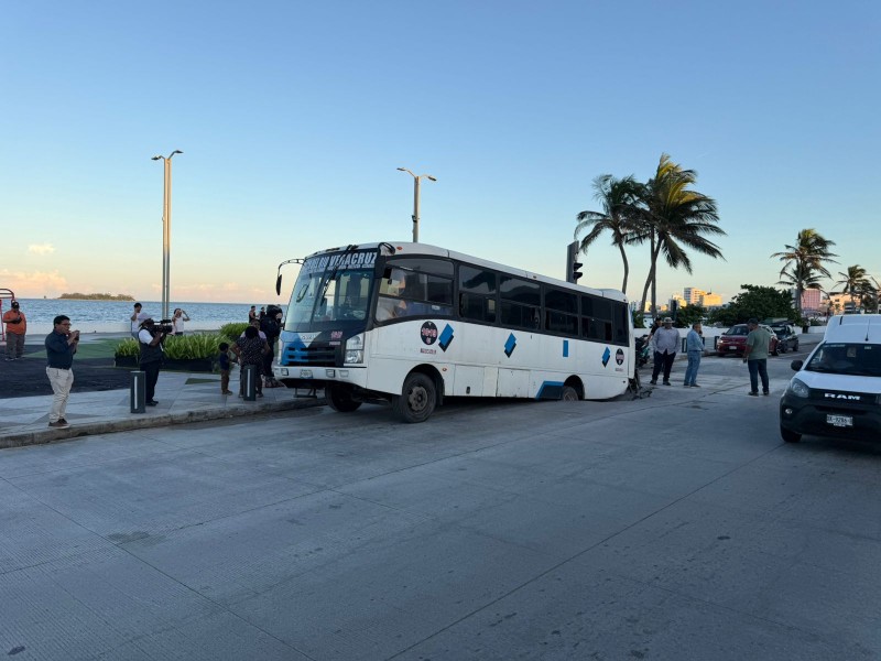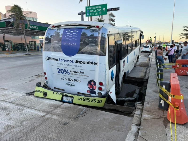 Un camión de transporte de pasajeros se fue a un socavón la tarde de este martes 21 de octubre en el bulevar Ávila Camacho en la ciudad y puerto de Veracruz.