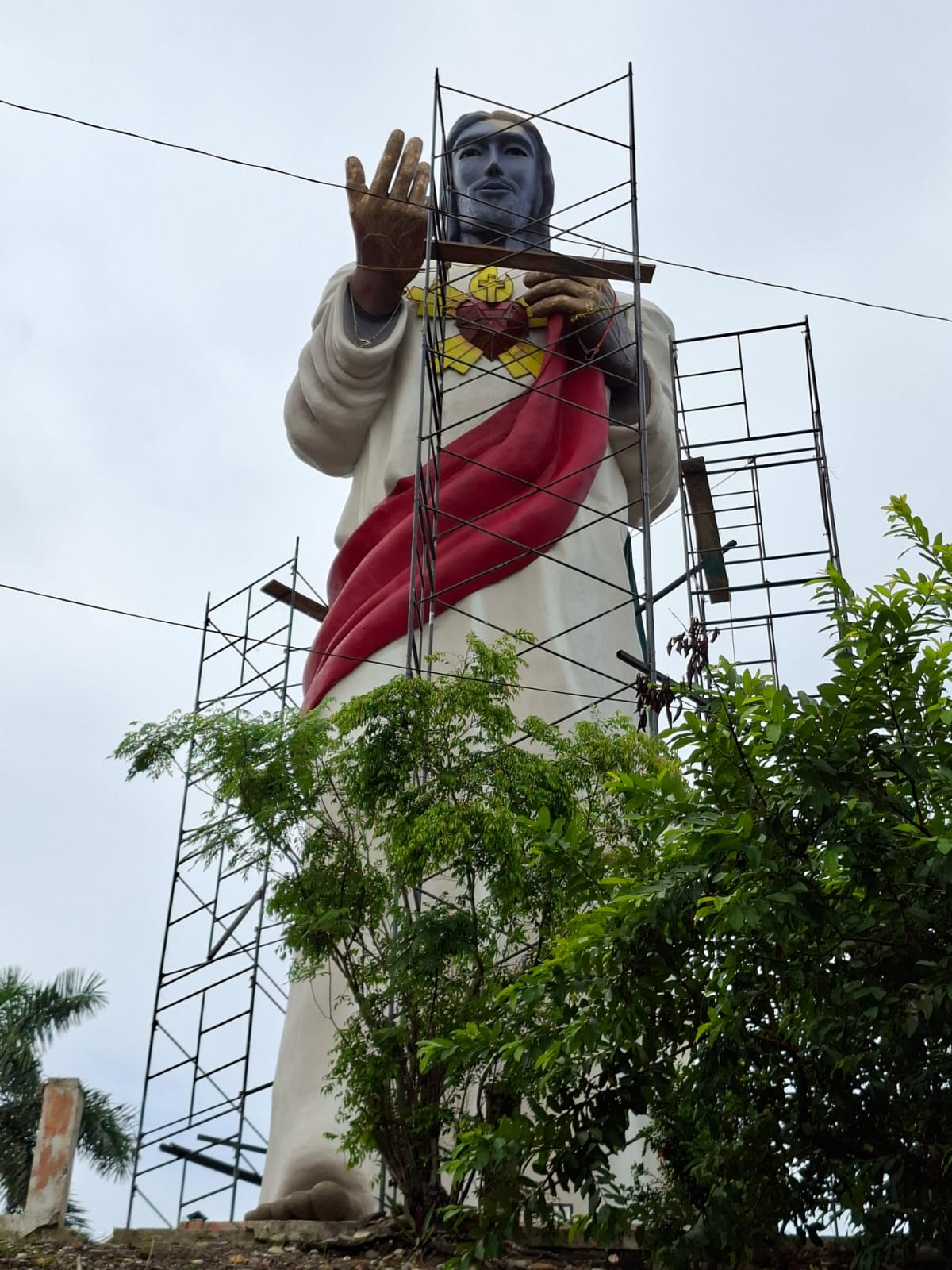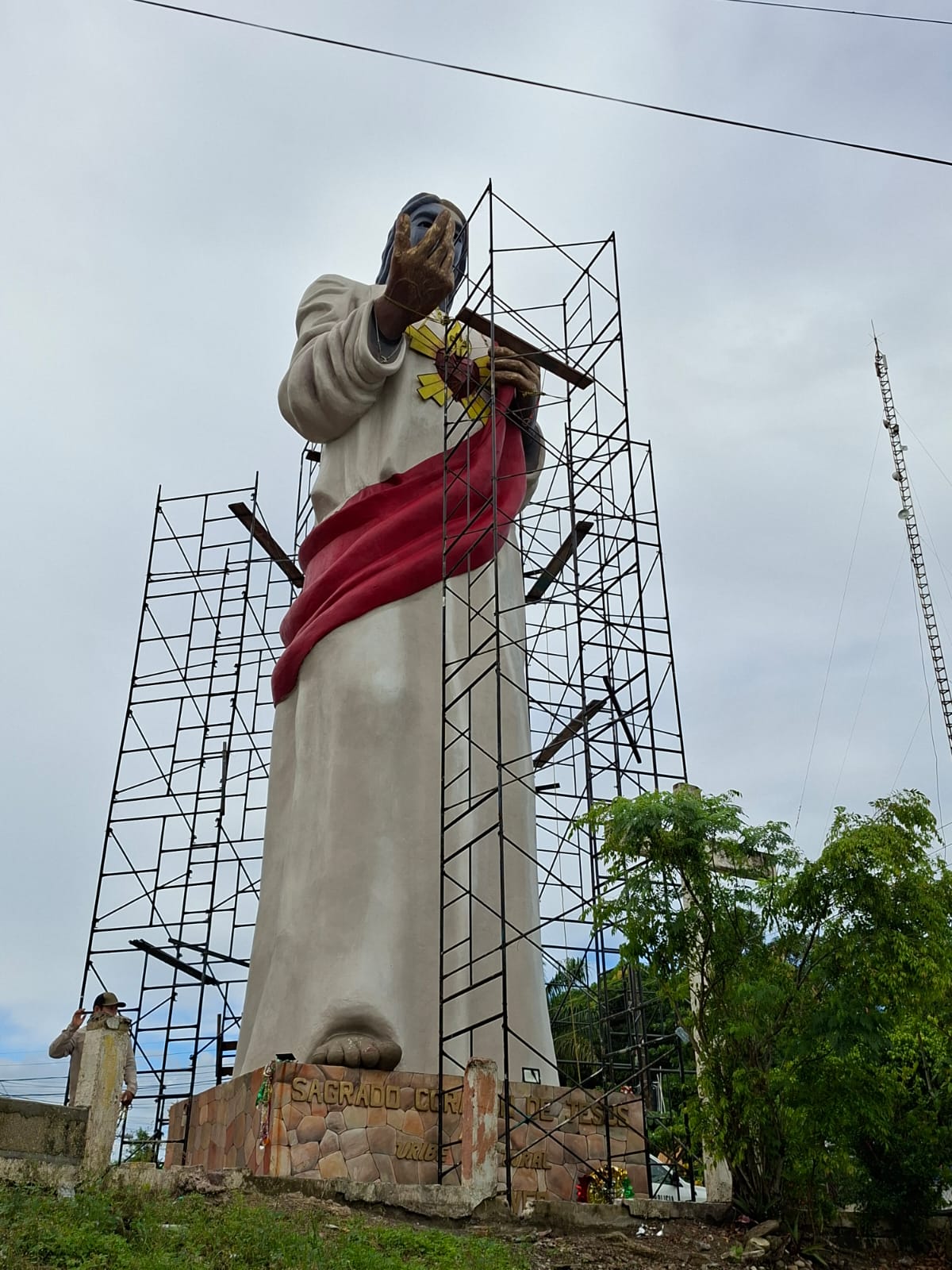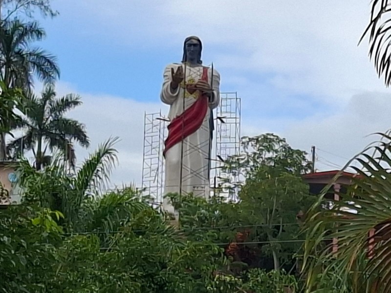 Por instrucciones del presidente municipal Miguel Ángel Uribe Toral, el escultor Moisés Velázquez Ramírez, autor del monumento al Sagrado Corazón de Jesús, patrono de Cazones, está realizando trabajos de restauración para mejorar la imagen de la escultura.