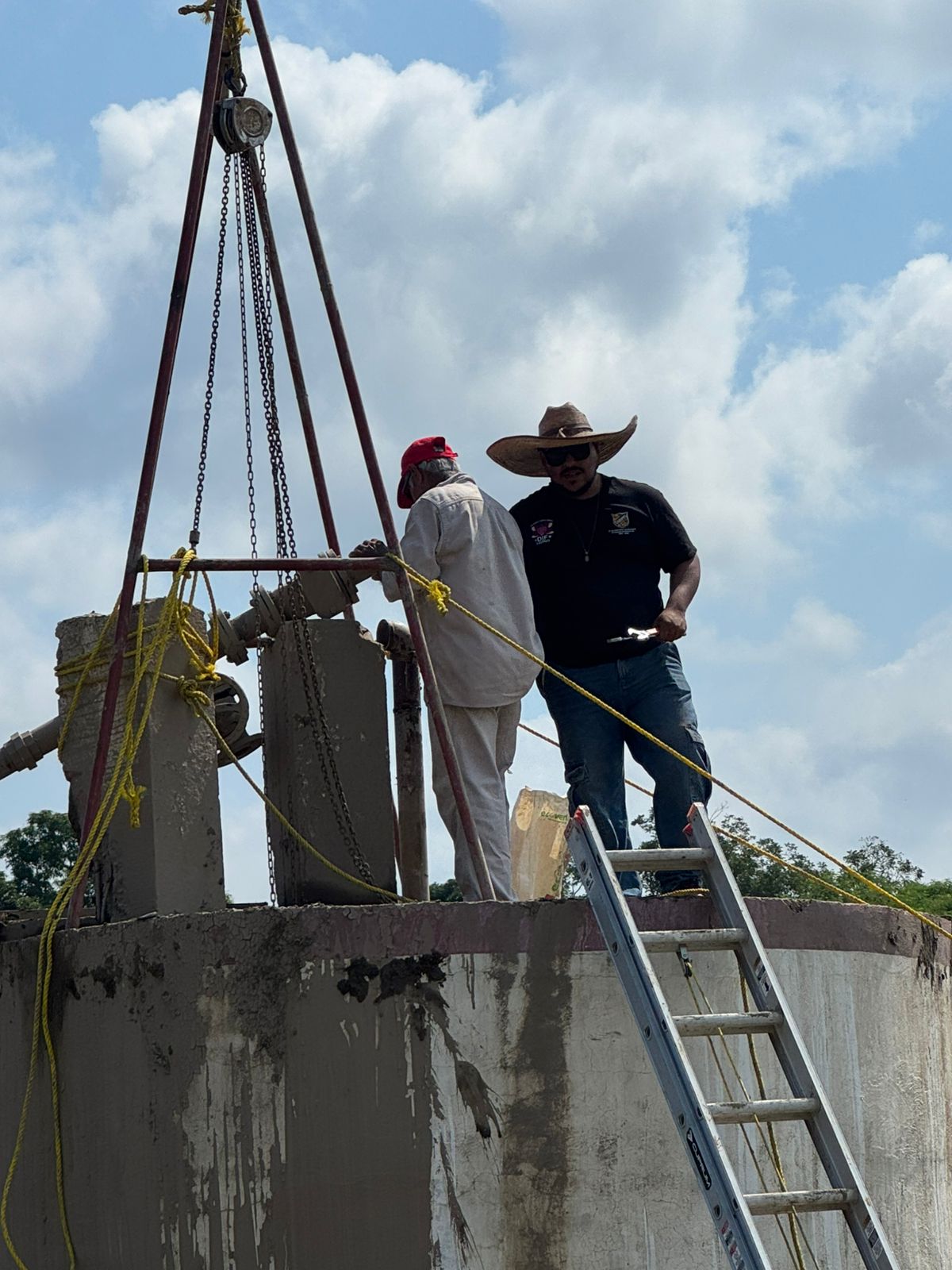 El alcalde Miguel Ángel Uribe Toral informó que la fuerte corriente del río destrozó la bomba del pozo profundo, la cual enviaba agua a los domicilios de la zona. Ante esta situación, se actuó de inmediato para reparar el sistema y reconectar la línea de suministro.