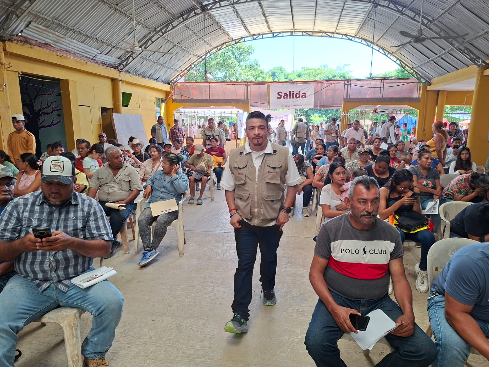 Desde temprana hora, servidores de la nación se dieron cita en el salón Berlín, donde se llevó a cabo la entrega de los apoyos. Durante el recorrido, Gómez Cazarín constató personalmente el desarrollo de las actividades en el municipio de Cazones de Herrera, Veracruz.