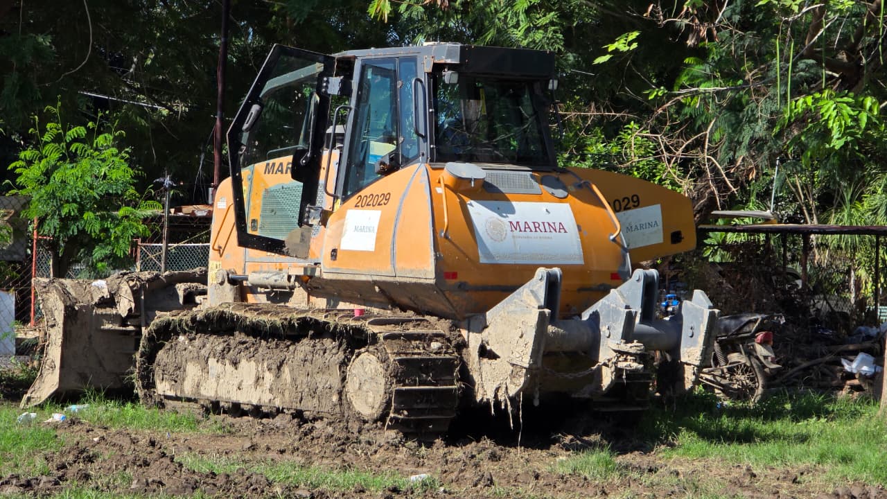 Al lugar arriban constantemente unidades de acarreo de la Secretaría de Marina, así como vehículos particulares que participan en las labores de apoyo, descargando los restos recolectados en calles y viviendas. En el sitio, maquinaria pesada realiza maniobras para concentrar los residuos en el centro del campo, evitando su dispersión en el entorno.